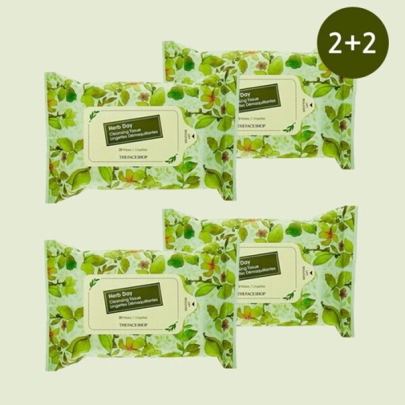The Face Shop Herb Day Cleansing Tissue 70 Sheets 2+2 Special Set / 더페이스샵 허브데이 클렌징티슈 70매 2+2 기획세트