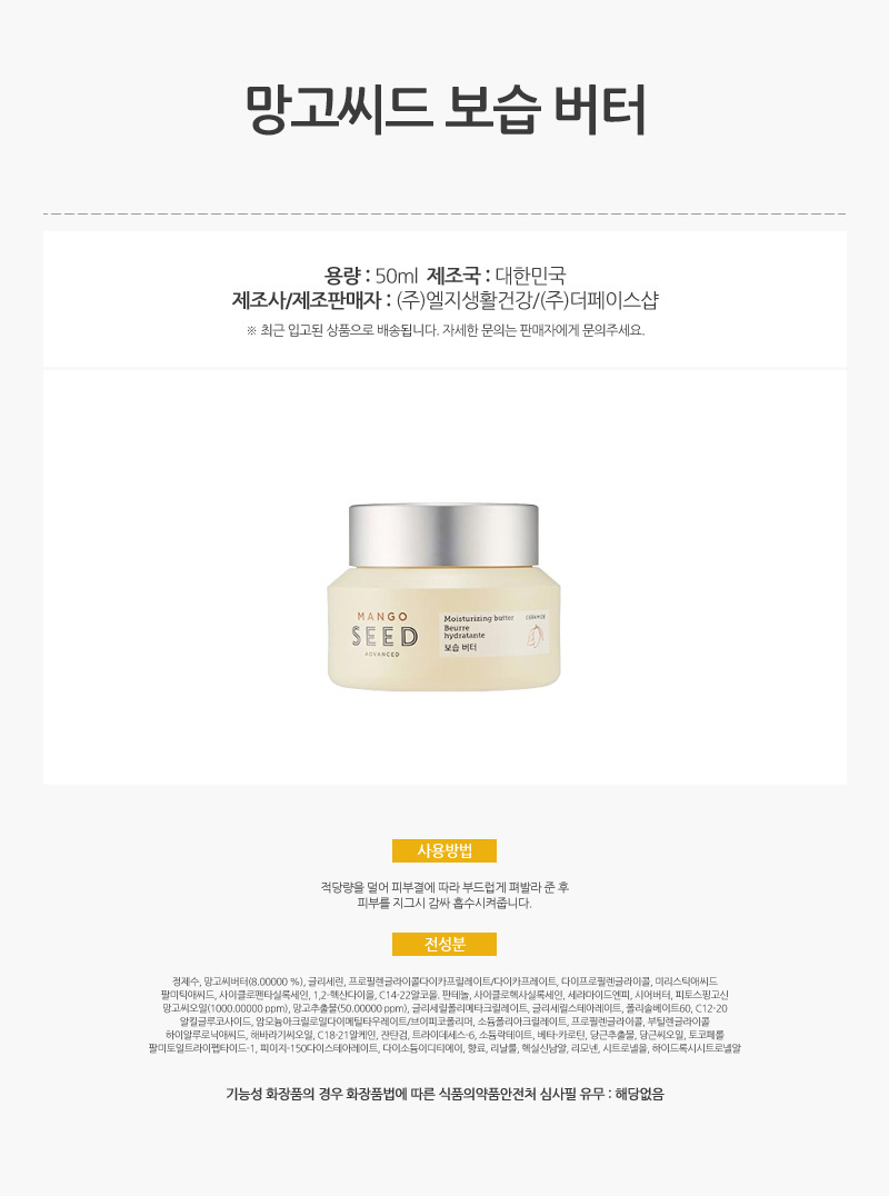 The Face Shop Mango Seed Moisturizing Butter 50ml / 더페이스샵 망고씨드 보습 버터 50ml