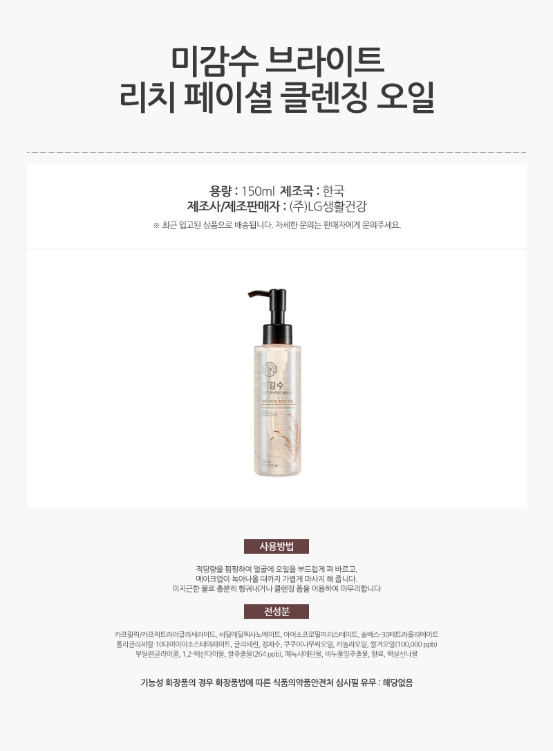 THE FACE SHOP Rice Water Bright Rich Cleansing Oil 150ml / 더페이스샵 미감수 브라이트 리치 클렌징 오일 150ml