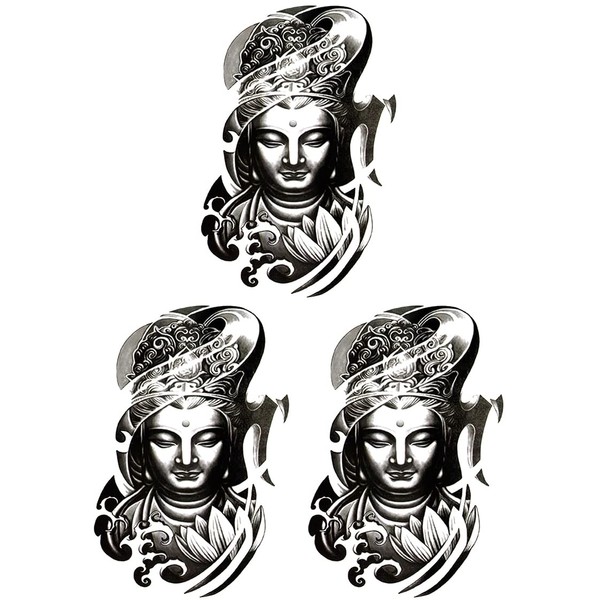 THE FANTASY hb071 Tattoo Stickers, Buddha Statue, A5 Size, Set of 3