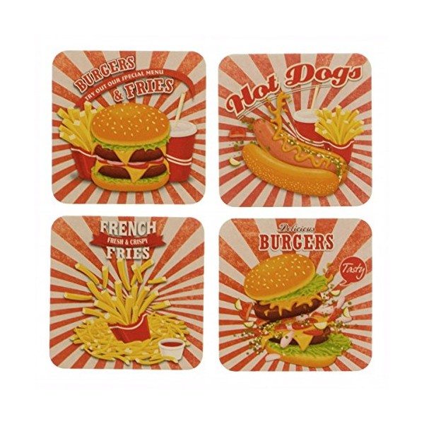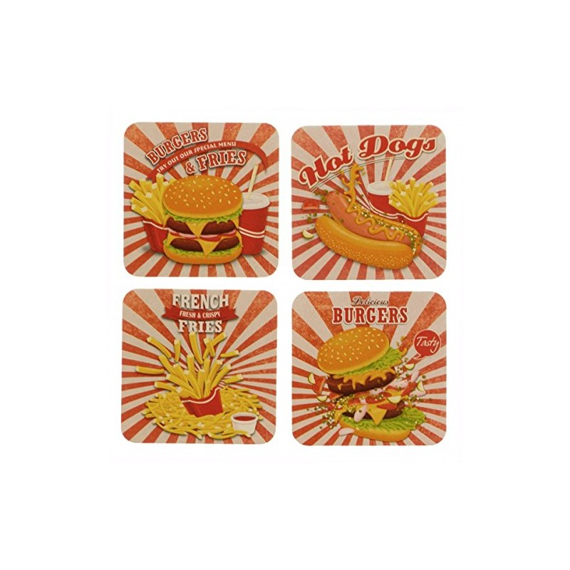 - Box contents: 12 x Fast Food Diner coasters.