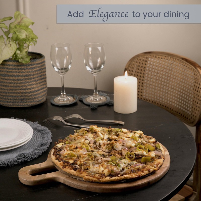 - IDEALLY SIZED WITH HANDLE FOR VERSATILE USE: Our serving board is thoughtfully sized to cater to the requirements of both home cooks and professionals. The generous surface area offers ample space for ingredient preparation, while the long handle ensures easy maneuverability. From vegetable chopping to meat carving, this cutting board is designed to tackle various kitchen tasks.