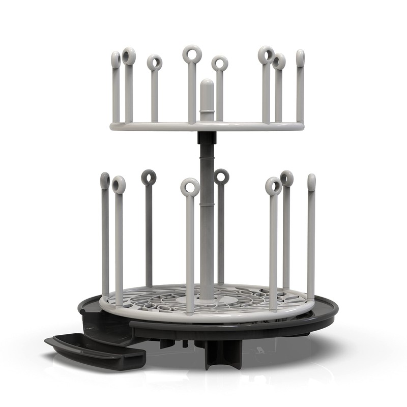 The First Years Modular Drying Rack holds more in less space! Unique kitchen friendly design works with mom's specific needs. The top shelf is height adjustable to work with all different sizes of bottles. Each shelf can turn independently to allow for easy access to its contents even when stored under cupboards. Includes an optional drip tray. Unit is dishwasher safe.