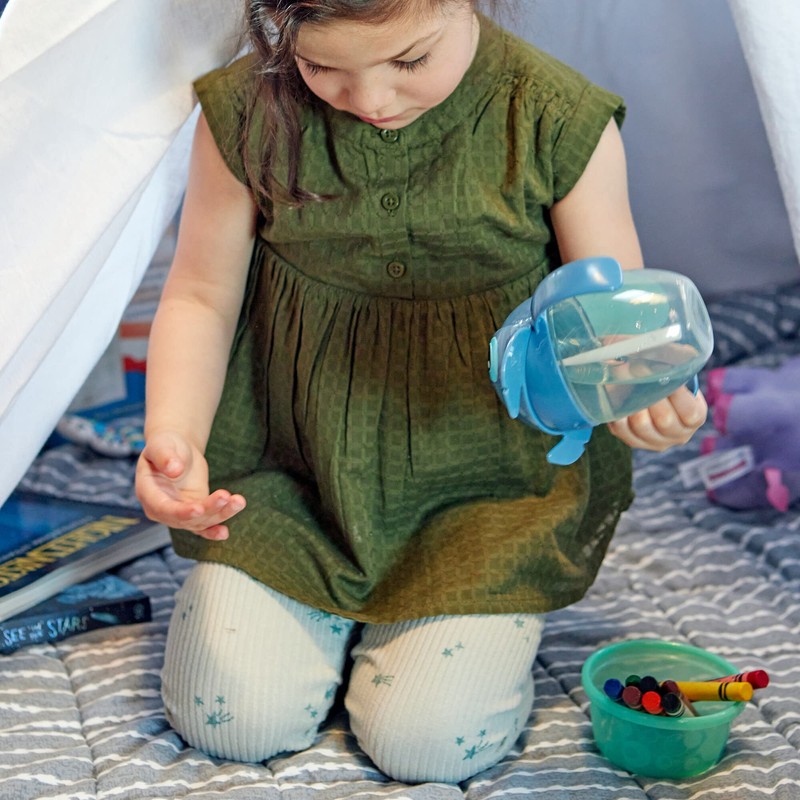 - Copa para niños con tapa abatible: la cubierta deslizante de este vaso mantiene el popote de silicona limpio y listo para beber