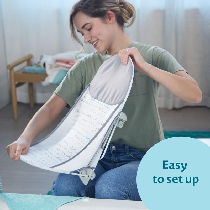 The First Years Sure Comfort Folding Baby Bather - Baby to Toddler Bath Tub - No-Slip Seat - for Sink or Tub Use