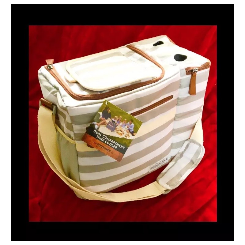 Design/model is-The Foundry since 1996 partnered with fit + fresh Insulated Picnic Wine Cooler Caddy Tote Shoulder Bag,keeps Cold up to 2 Days!. Dual compartment