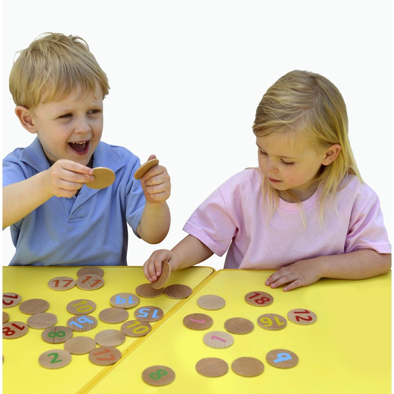 - AN OPEN-ENDED RESOURCE -- These wooden disks are a hands-on way to introduce basic counting. Or, create your own math lessons at home or school!