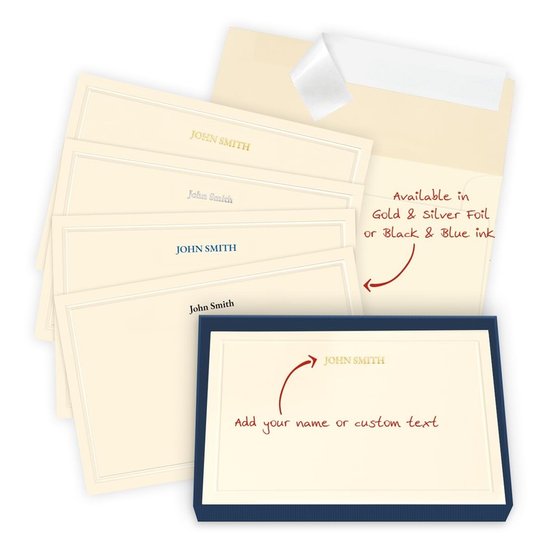 The Gallery Collection, 15 Flat Single-Panel Personalized Note Cards with Embossed Borders, Includes Sealfast Envelopes