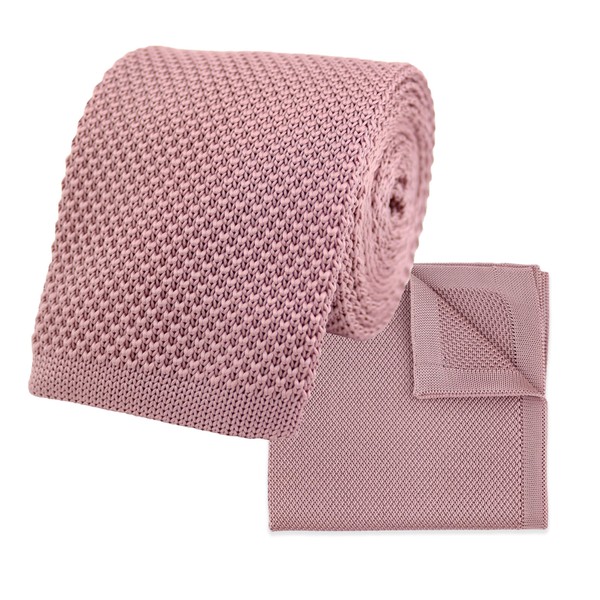 THE GENTS LAB 100% Polyester Square End Knitted Tie & Pocket Square Sets - Many Colours (Dusty Pink)