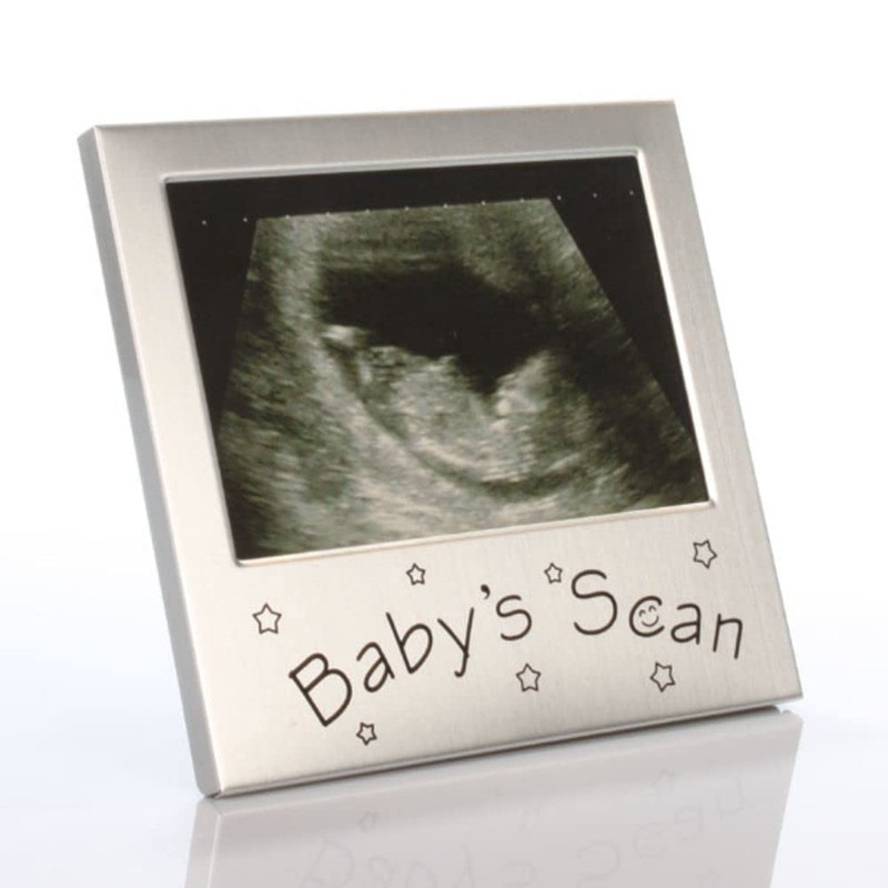 - Decorated with stars and the words ‘Baby's Scan' in black, the frame also has a tiny smilie, hiding within the ‘c' of ‘scan'. Cute.