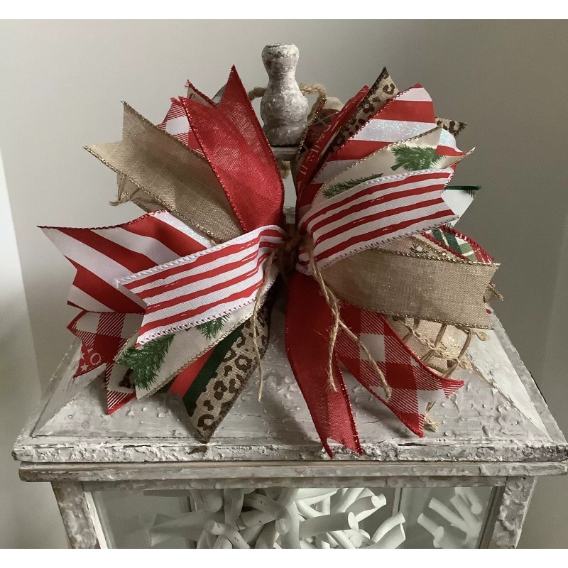 The Glitz & Glam Boutique Red & Green Christmas Messy Bow, Christmas Lantern Bow - Handmade 10" Christmas