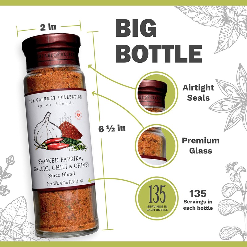 The Gourmet Collection Seasoning Blend, Smoked Paprika, Garlic, Chili & Chives Spice Blend-Salt Free Seasonings for Cooking Chicken, Beef, Pork, Fish.