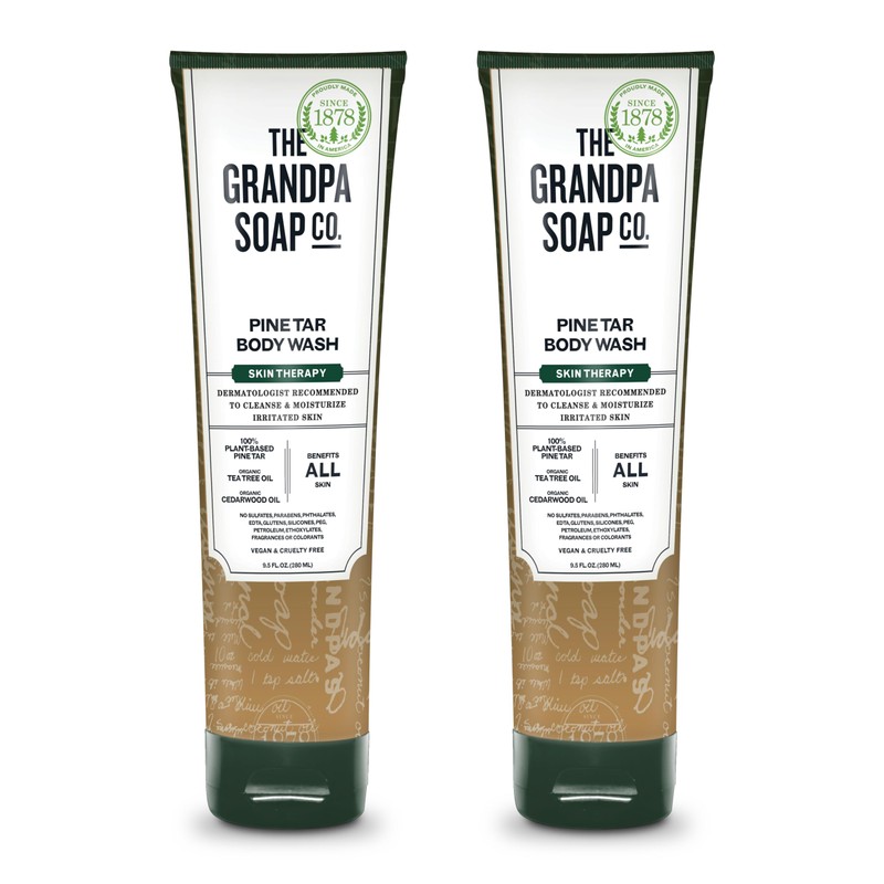 The Grandpa Soap Company Pine Tar Body Wash - Dermatologist Recommended to Cleanse & Moisturize Irritated Skin, Deodorizing Power, With Pine Tar & Tea Tree Oil, 9.5 Fl Oz 2 Pack