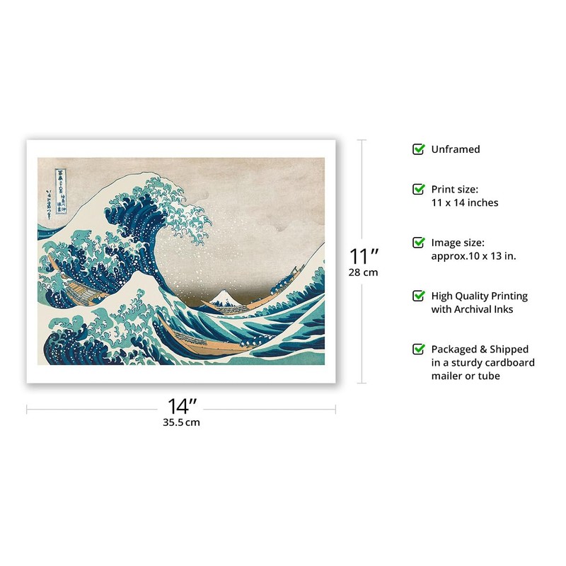 The Great Wave off Kanagawa - Mount Fuji - Vintage Japanese Woodblock Print by Katsushika Hokusai c.1830s - Fine Art Matte Paper Print (Unframed) 11x14in