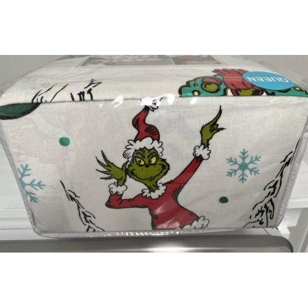 The GRINCH Max Dr. Seuss QUEEN Size 4 Pc Cotton Flannel Sheet Set Christmas FUN