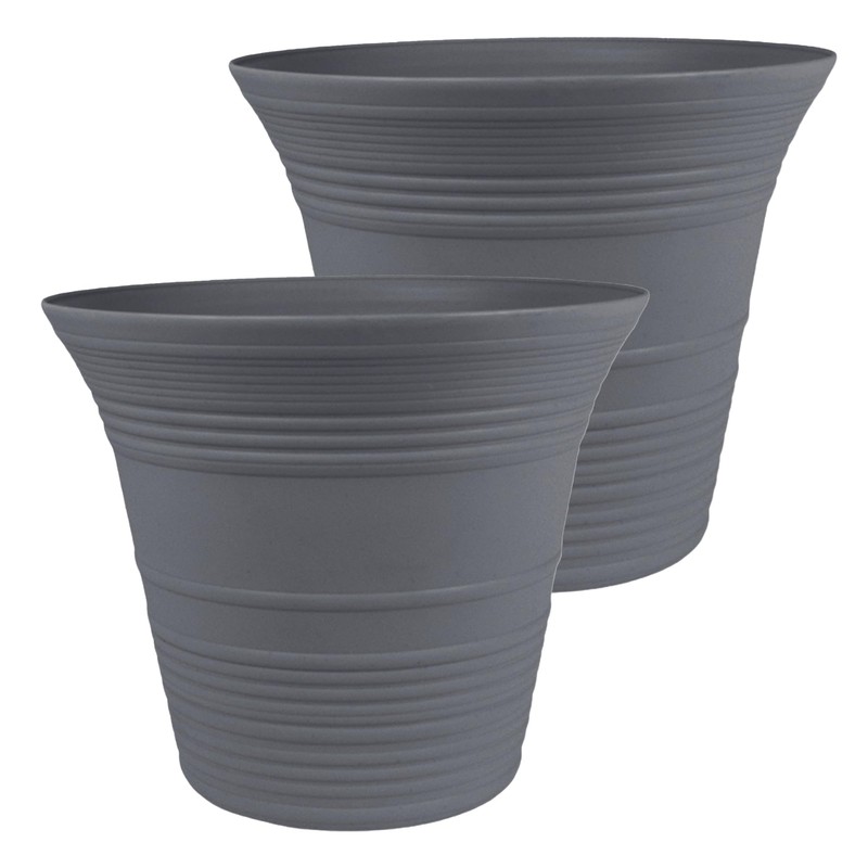 The HC Companies Sedona Round Self-Watering Pot - Lightweight Self Care Planter - Plastic Planter for Herbs & More - Durable Plant Pots for Indoor Plants & Outdoor Plants (16" Warm Gray, Pack of 2)