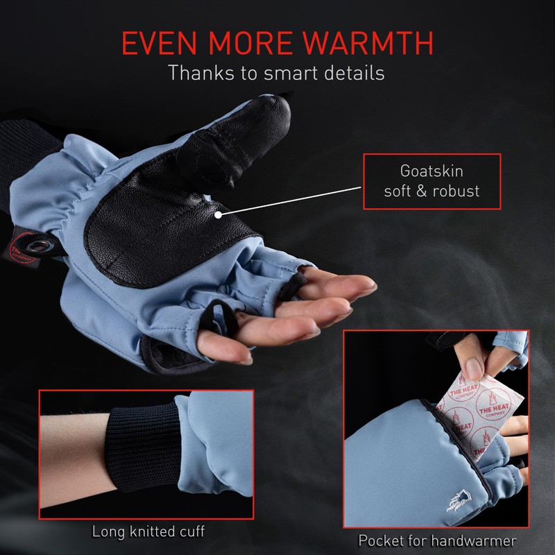 THE HEAT COMPANY - HEAT 2 SOFTSHELL - fingerless touchscreen glove and mitten in one - Premium Quality- warm winter gloves & bicycling gloves - against cold during sports & work