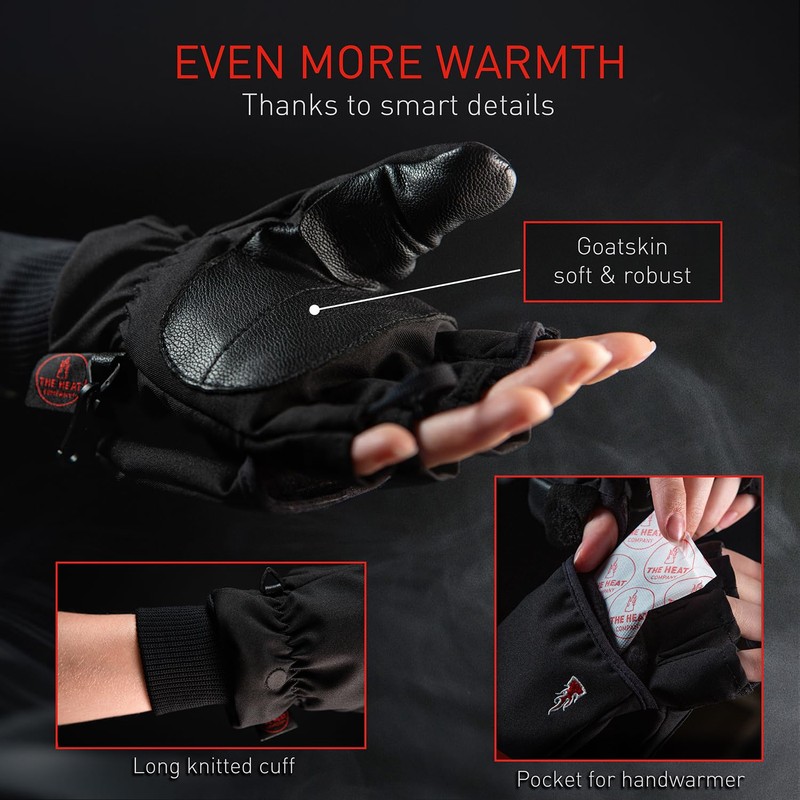 THE HEAT COMPANY - HEAT 2 SOFTSHELL - fingerless touchscreen glove and mitten in one - quality from the Alps - warm winter & bicycling gloves - against cold during sports & work β Black, M