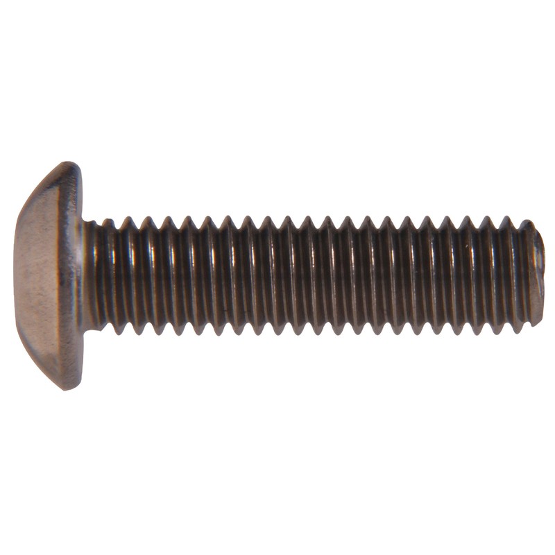 A button head socket cap screw is a screw with a button head and hexagon drive for tightening with an Allen-style wrench This screw carries a recessed internal socket drive to add strength Used on machine parts or manufacturing equipment.