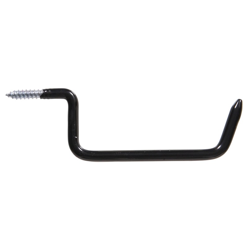 Ladder Hooks hold tools, extension cords, garden hoses, air hoses, light strands, paint sprayers and more. If hanging a ladder, they should be stored vertically or horizontally and require two hooks to support. Fasten into wood stud for proper installation. Mar-proof coating protects items from scratches. Do not use for overhead applications.
