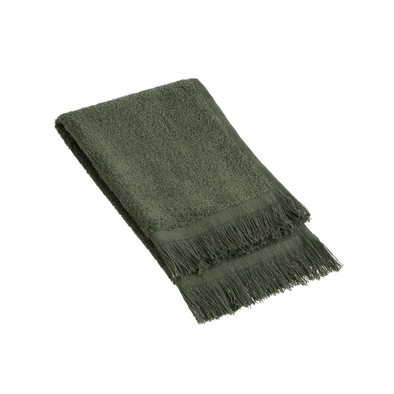 The Holy South - Fringed Reversible Fingertip Hand Towel (Size 11" W x 18" L) Terry Cotton Washcloth Set for Face and Bathroom use. (3, Forest Green)