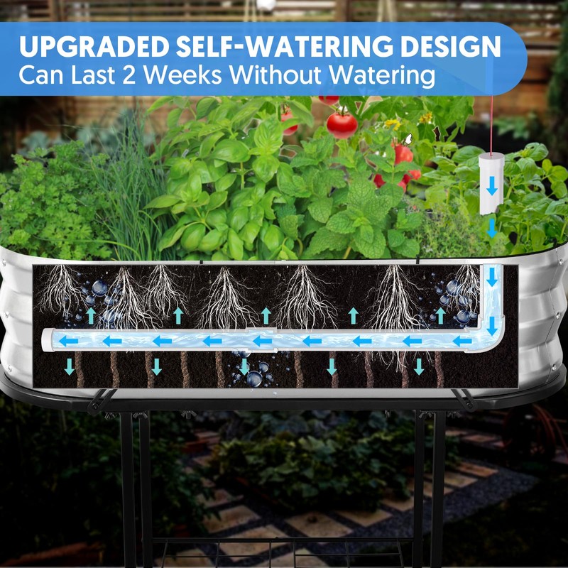 - Promote Root GrowthThis self-watering raised bed ensures plant roots get water, not the top bits, which helps plant roots grow stronger