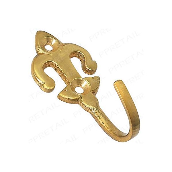 - Good quality pair of Antique Design Solid Brass Metal Curtain Tie Back Hooks in a Fleur De Lys Style.