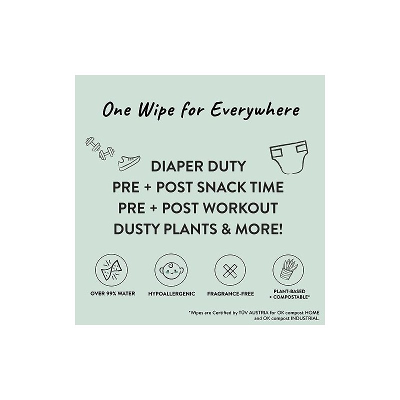 - Clean up all of life's messes. Compostable, plant-based multi-use Wipes are made with over 99% water and only 7 transparent ingredients, making them gentle and safe for baby's sensitive skin but great for the whole family