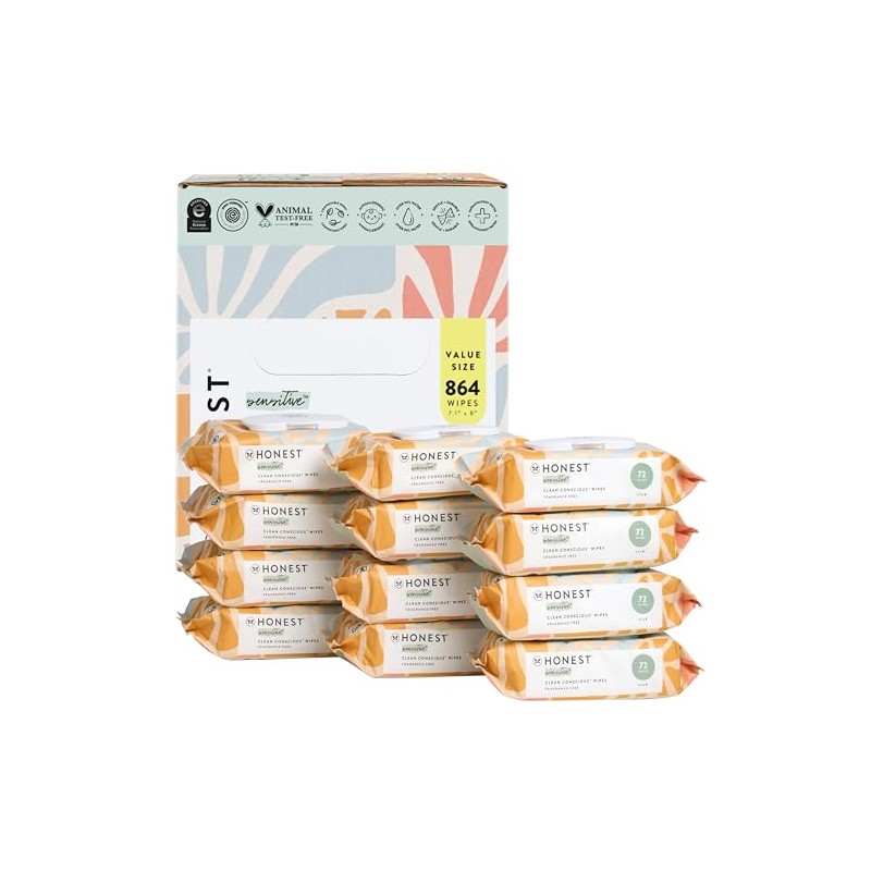 The Honest Company The Honest Company Clean Conscious Multi-Use Wipes | Hypoallergenic + Unscented for Sensitive Skin | Over 99% Water, Compostable, Plant Based, Baby Wipes | Sunburst, 864 Count