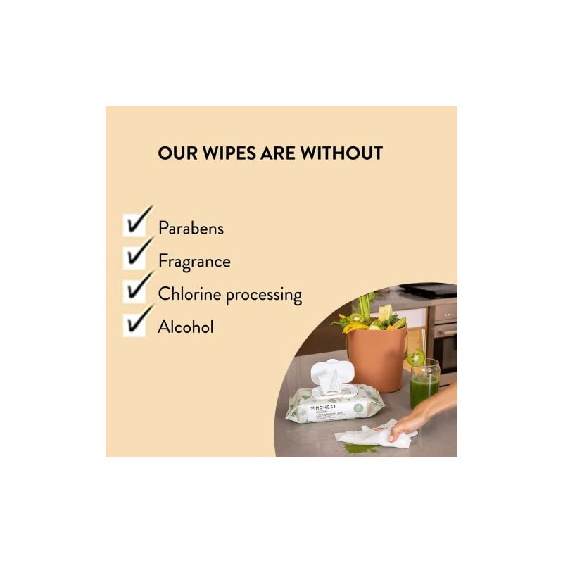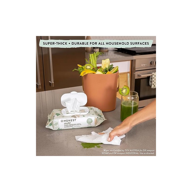 Clean up all of life's messes with our compostable plant-based baby wipes, made with over 99% water and gentle on sensitive skin. From diaper change duty and messy fingers to sticky counters and gunked-up toys — our ultra-durable, extra thick wipes get the job done! These hypoallergenic plant-based wipes are dermatologist-tested and are made with only 7 transparent ingredients that are toxicologist-audited, making them safe + gentle for baby and the whole family. Wipes made without plastic, fragrances, parabens, and chlorine processing – containing everything you need and nothing you don't. Now Compostable! Honest Baby Wipes disintegrate in 8 weeks.** For municipal: Always check for the availability and acceptance of municipal/institutional composting facilities as they may be limited in your area. For home: Do not compost if wipes are used to clean non-compostable items like human/animal waste or mixed with cleaning soaps/sprays. Generally, wipes shouldn't be more than 10% of your compost heap. **Following Modified ISO 20200 standards to assess disintegration under home composting conditions.