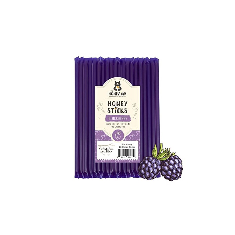 The Honey Jar Blackberry Flavored Raw Honey Sticks - Pure Honey Straws For Tea, Coffee, or a Healthy Treat - One Teaspoon of Flavored Honey Per Stick - Made In The USA with Real Honey - (20 Count)