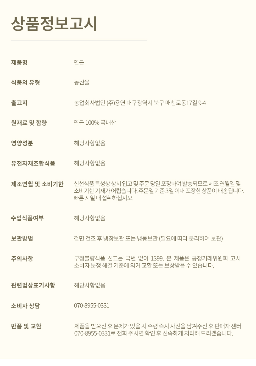더조은 신선한 국내산 연근 (특품) 4kg