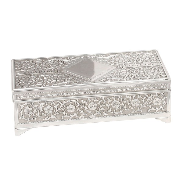 - Silver plated vintage design jewellery box, lined inside to protect jewellery.
