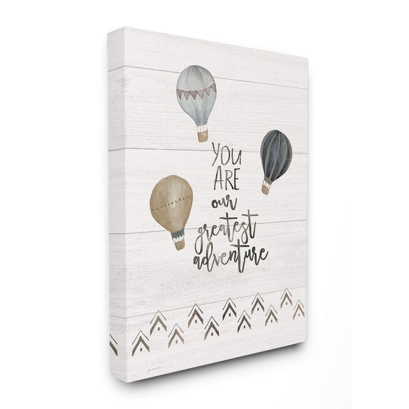 The Kids Room By Stupell Our Greatest Adventure Neutral Grey Hot Air Balloons Canvas Wall Art, 16 x 20, Proudly Made in USA