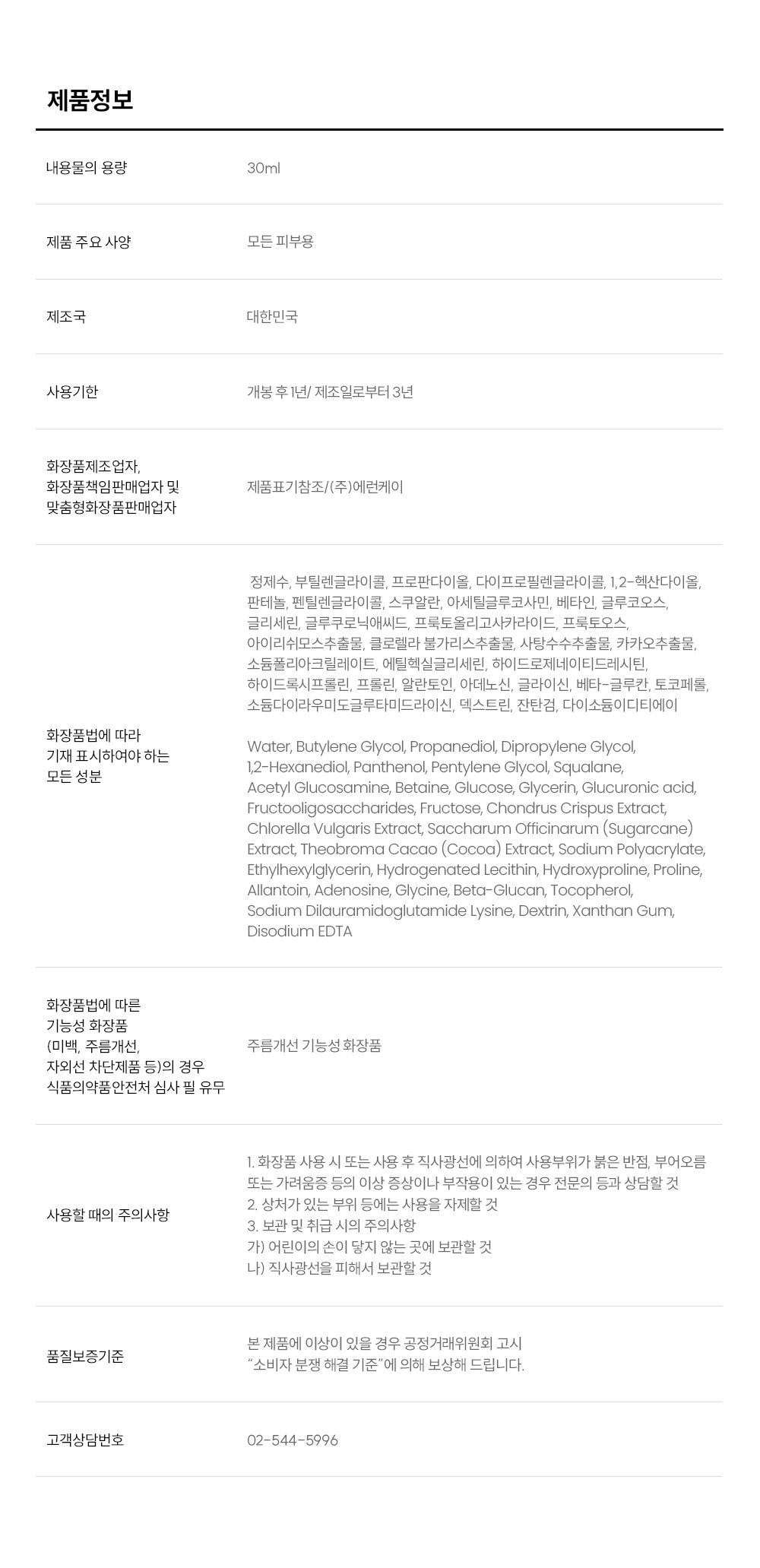 Note: This product is subject to the review by the Ministry of Food and Drug Safety for functional cosmetics.
