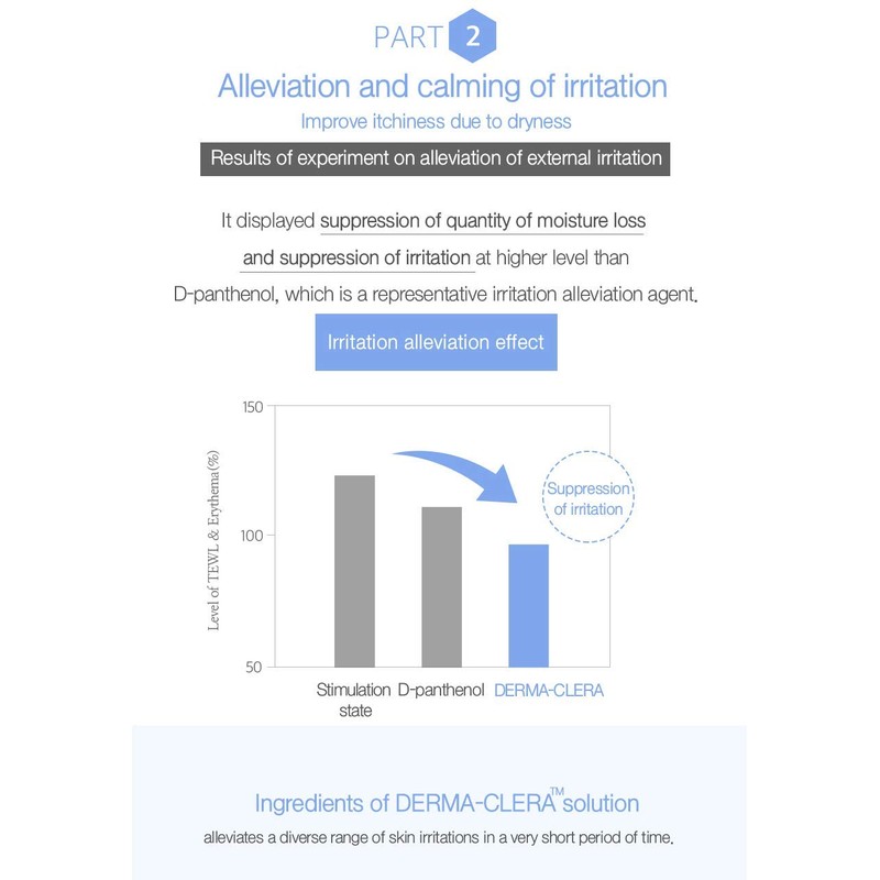 - DERMA-CLERA helps fortify the skin barrier, calms the skin, maintains moisture level, alleviates and calms irritation, and helps skin regenerate.