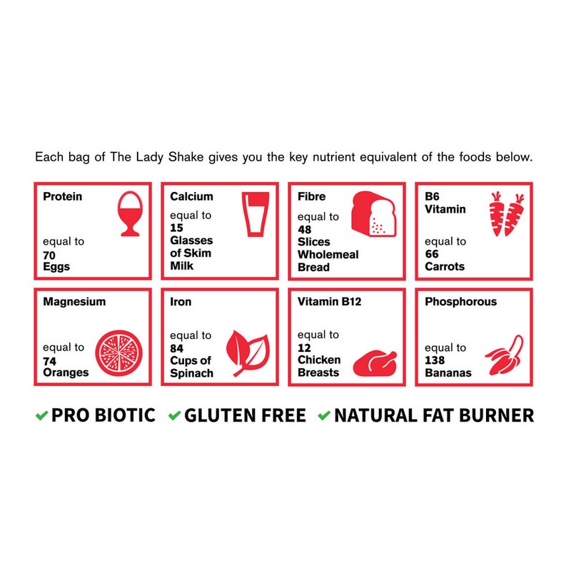 The Lady shake is a fast and easy way to lose weight. A healthy meal in a shake that contains everything your body needs to make you look and feel great on the inside and out! Comes in a great tasting Banana flavour.