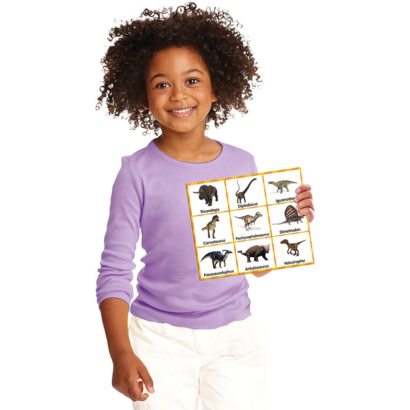 - LEARN ABOUT DINOSAURS THROUGH PLAYING – Kids LOVE dinosaurs and Match It! Dinosaur Bingo is a great way for them to learn about their favorite prehistoric friends! Simply match the real photo dino picture cards or names to the playing board. The first one to fill their card wins!