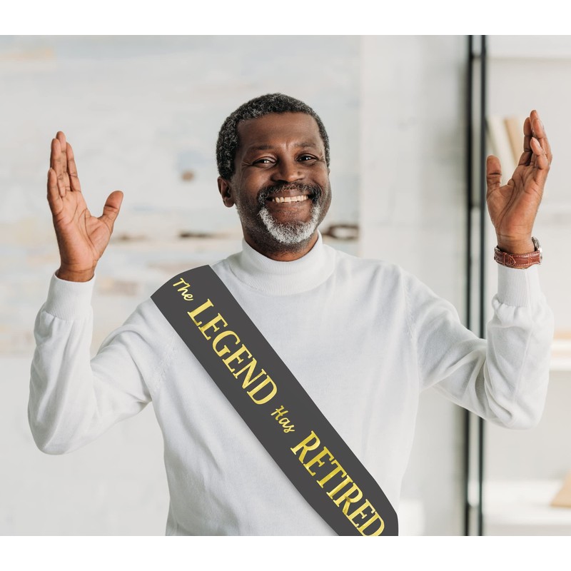 - PREMIUM QUALITY – Our retired sashes are made of high quality, smooth satin fabric with gold foil stamped letters that say The Legend Has Retired