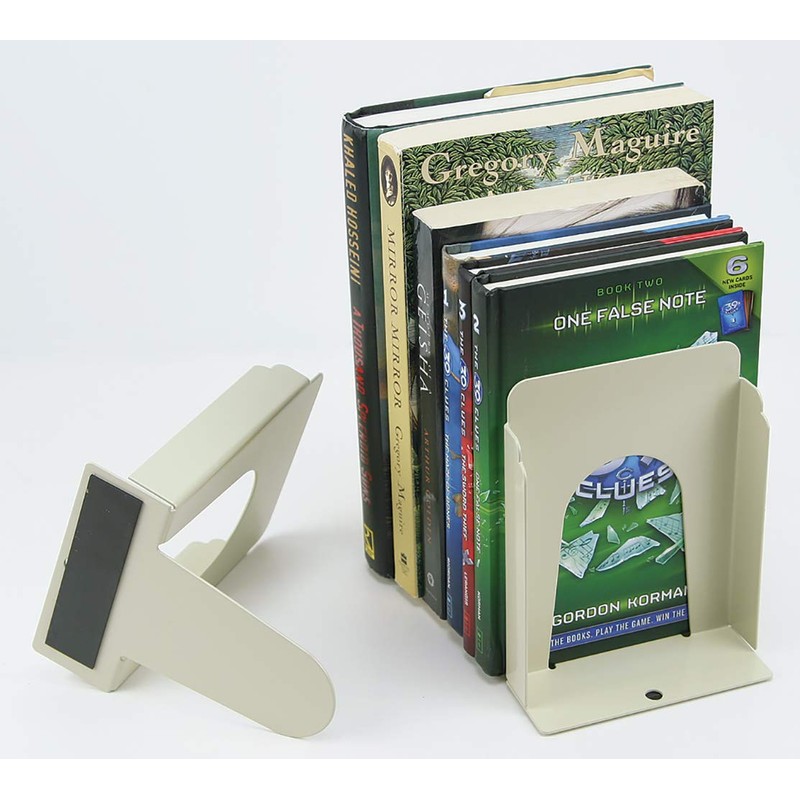 - Magnetic base, sold in pairs, each bookend measures 6"H x 4-5/8"W
