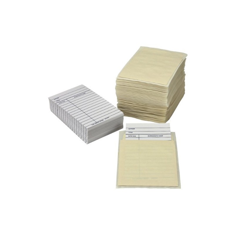 - Medium weight book cards are made from 27% recycled index card stock; pockets are self-adhesive and made from highest grade #77 pale cream, acid-free, high-fiber content paper