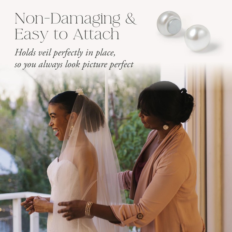 Maplefield The Little Things Double-Sided Pearl Veil Weights – 12 Magnetic Non-Damaging Bridal Accessories and Bride Presents for Securing Long Wedding Trains at Outdoor Ceremonies