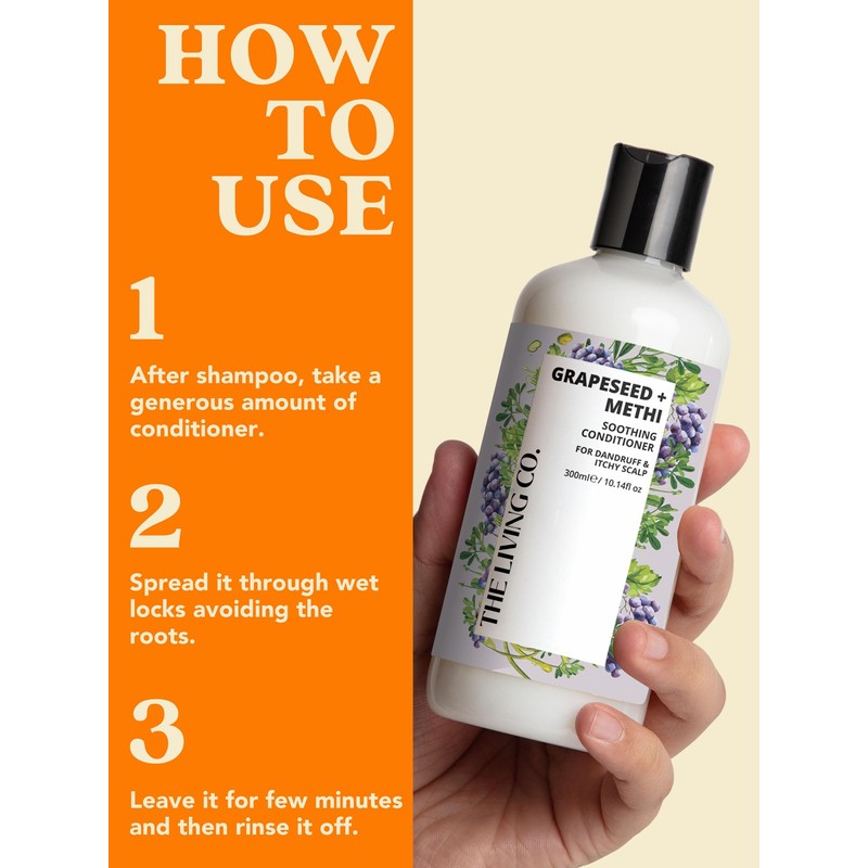 THE LIVING CO Soothing Conditioner With Grapeseed + Methi For Dandruff & Itchy Scalp - 300ml