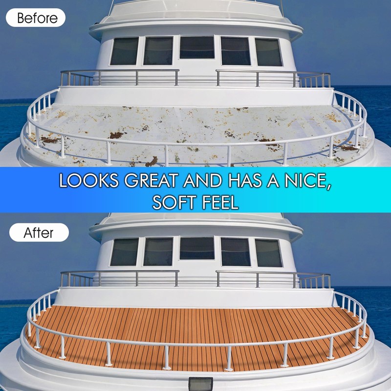 - Self adhesive backing - The EVA Foam Teak Decking for boats features a very strong adhesive backing that sticks to almost any smooth surface! For the best results, ensure that the application surface is clean and free of any dirt, dust, grime, oils, etc.