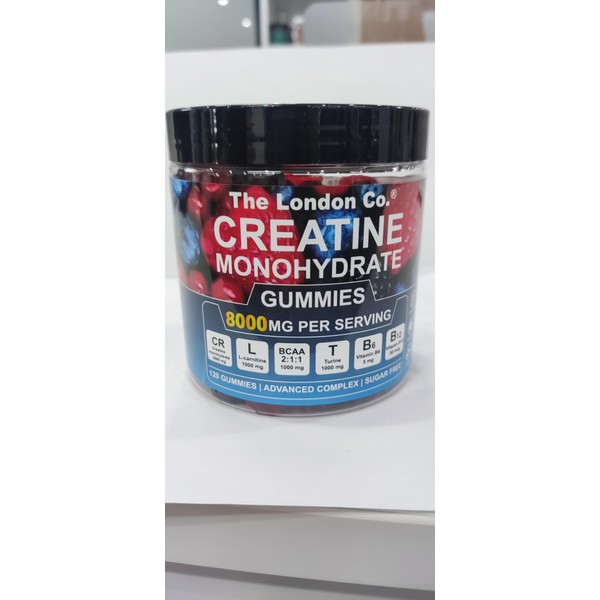 The London Co. Creatine Monohydrate Gummies, 8000mg, 120 Count, Sugar Free, Advanced Complex with BCAA, L-Carnitine, Taurine