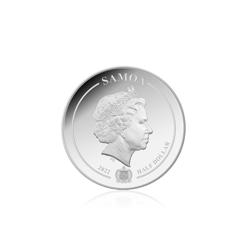 - Country of Issue: Samoa, Face Value: Half Dollar, Year of Issue: 2022, Base Metal: Cupro-nickel, Plating: .999 Silver, Weight: 31 g, Diameter: 41 mm, Edition Limit: 25,000