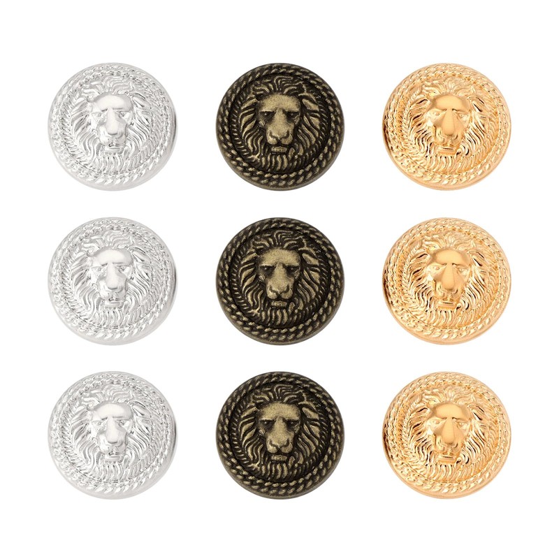 The Lord of the Tools 9 Pieces Lion Head Sewing Buttons Embossed Lion Pattern Metal Round Button Set for Blazer Suits Sports Coat Uniform Gold Silver Bronze, 25 mm