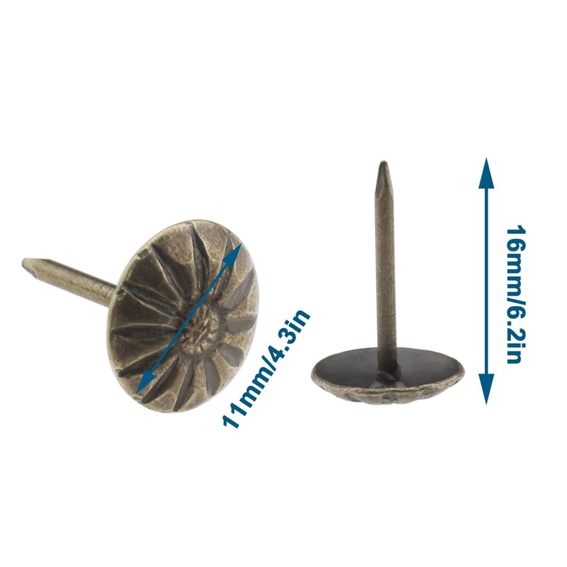 - Material: Antique decorative nails made of metal bronze material, the surface is treated with bronze colour, which has a beautiful appearance and strong durability.