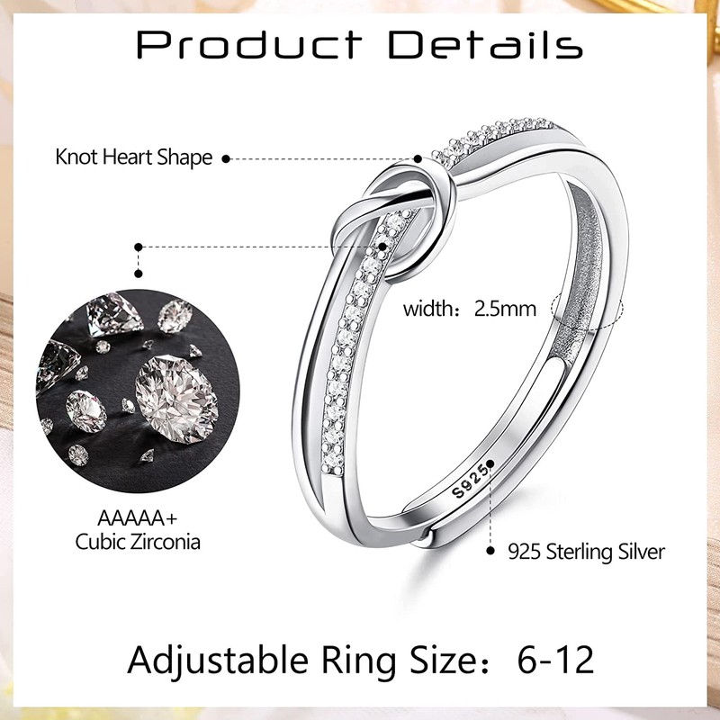 - Love Knot Ring For Women Girls: 925 Sterling Silver Ring Is Designed With The Shape Of a Love Knot, Expressing Intense Love,Symbolizing The Heart-To-Heart Connection,Also Reminding Your Love For Her/His Is Endless,Can Be Used As Mother Daughter Ring,Friendship Ring,Couple Ring, Promise Ring,Etc