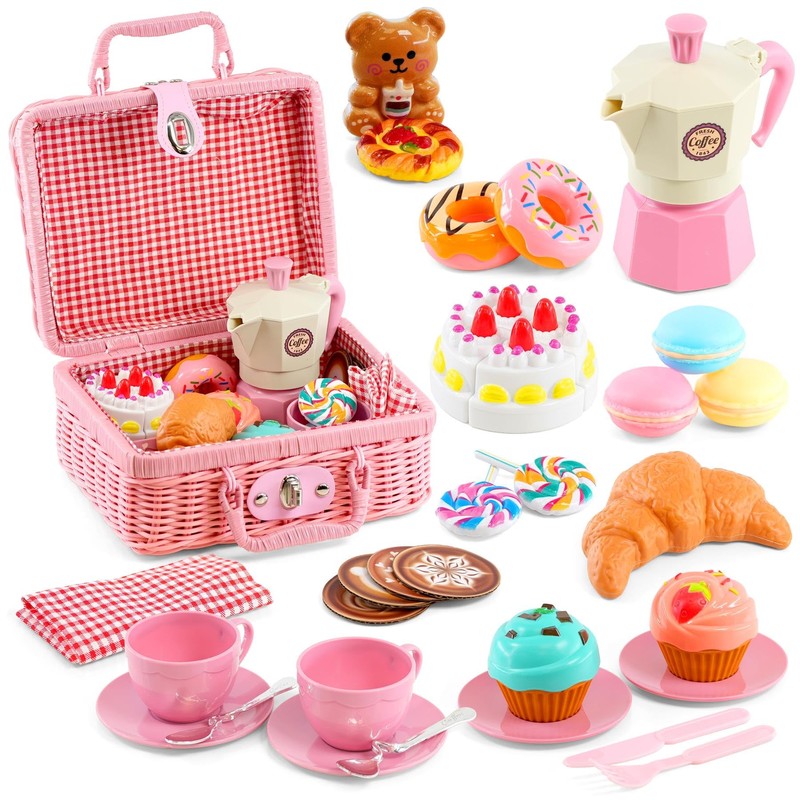 - COMPLETE PICNIC SET: Our pink wicker-patterned picnic basket from The Magic Toy Shop includes 30 high-quality pieces, featuring toy kitchen items, toy food, and toy kitchen accessories, perfect for hours of imaginative play.